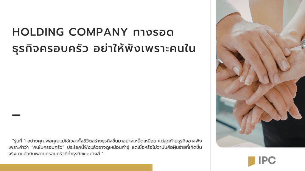 การจัดตั้ง Holding Company จึงเป็นทั้ง “เกราะกำบัง” และ “ทางรอด” ที่จะเข้ามาช่วยจัดโครงสร้างทางธุรกิจ และช่วยแยกเรื่องภายในบ้านออกจากเรื่องงานอย่างเด็ดขาดก่อนที่ทุกอย่างจะสายเกินแก้